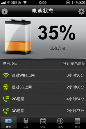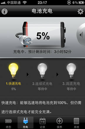电池医生就是基于此目的而研发,协助用户对电池的充电进行时间管理。比如,当电池处于快速充电阶段,则其对应的“灯泡”会亮为黄色。