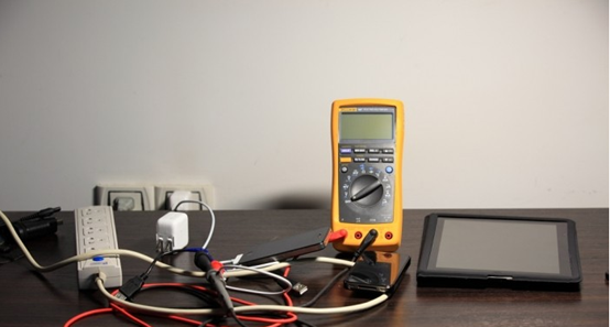 从上图不难看出:快速充电和完全充电的重要区别在于电流,快速充电阶段电流基本是恒流,完全充电阶段电流在降低。电池医生能引导iPhone进入完全充电阶段,则只需要通过电流表(万用表)读取充电线中的电流值,看其电流值的走向即可。