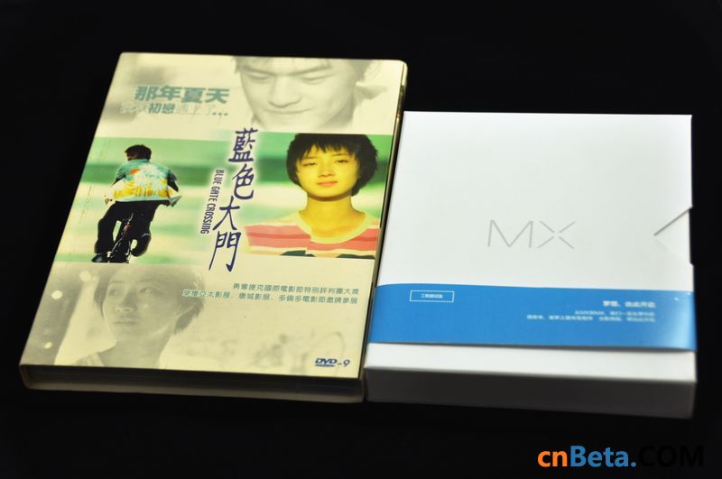 MX的包装外观主色依旧延续了M9的白色色调风格,MX的主包装看起来像一本书,这是由于魅族采用了充电器独立包装的方式,所以机身的包装就大大简化了,虽然视觉上显得包装更轻薄,但重量感十足,我在拍照的时候放置了一个DVD盒,对比大小。