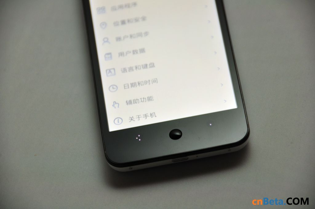 不同于M9,MX的菜单键和返回键采用LED背光的方式,这两个按键也是手机的呼吸灯,并且这两个灯还会随着机身的转换而变化,在程序的内外也会有所改变。比如当程序中无法再呼出界面时,右侧的菜单键就会显示一个灯(小圆点)。横向三点代表可进行设置或者呼出菜单,三角形三点代表返回。