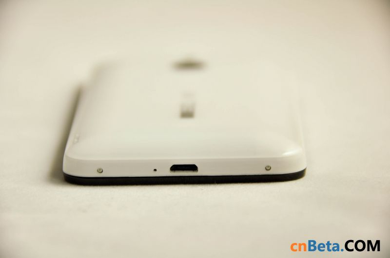 MX的底部的变化比较大,首先是Mini USB口(大口)升级到了Micro USB口(小口),这也符合全球移动通信联盟协会(GSMA)全球统一标准充电器的要求。小的体积带来是设计的大改进,在节约设计空间的同时也更加环保。USB口旁边是收音的麦克风。在底部的两端的小孔,其实是后盖的卡子。这里埋个雷,下文会说到。