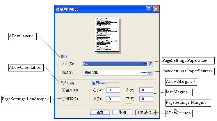 AllowPaper:是否可選擇頁面大小和紙張來源。