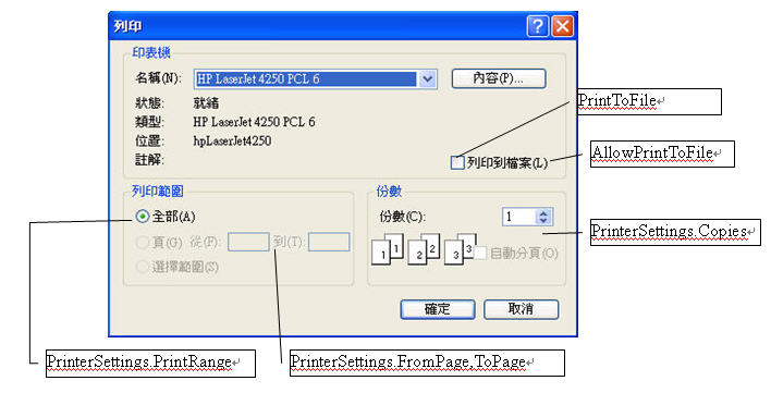 PrintDialog的用法以與PageSetupDialog用法類似。