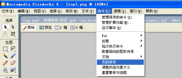 用FW实现文字渐变效果不太容易,我今天发现了这么一个好东东,所以拿出来和大家分享。 1。 将下载下来的插件文件 无敌渐变.jsf 存放到 Fireworks 的\Configuration\Commands\目录下 2。然后打