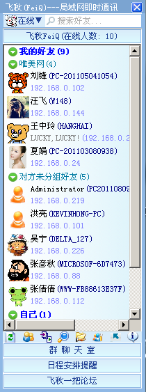 飞秋(局域网聊天工具),局域网中的QQ。聊天,建立群组,传送文件,功能特别强大。